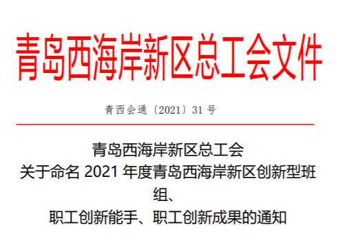 近日,青島西海岸新區總工會發布通知,公布“2021年度青島西海岸新區創新型班組、職工創新能手、職工創新成果”評選情況,公司工程技術研究中心榮獲新區創新型班組殊榮,該部門副主任呂靈靈、副主任工程師仉杰當選新區職工創新能手。[ 查看更多 ]