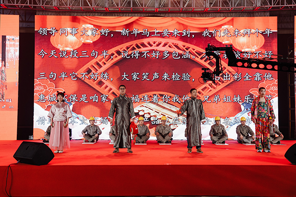 5點(diǎn)30分,文藝晚會正式開始。創(chuàng)意節(jié)目精彩紛呈,全場氛圍熱烈火爆。生產(chǎn)管理部的三句半編排讓人倍感新鮮,情景劇“惠城奇幻夜”天馬行空,舞美效果將晚會推向高潮,小品“相親”表演讓人捧腹,戲曲與勵志歌曲串燒HIGH翻全場……
