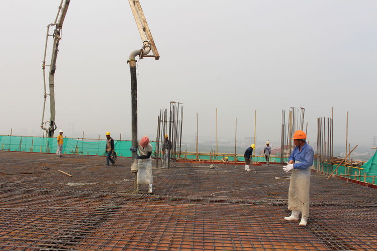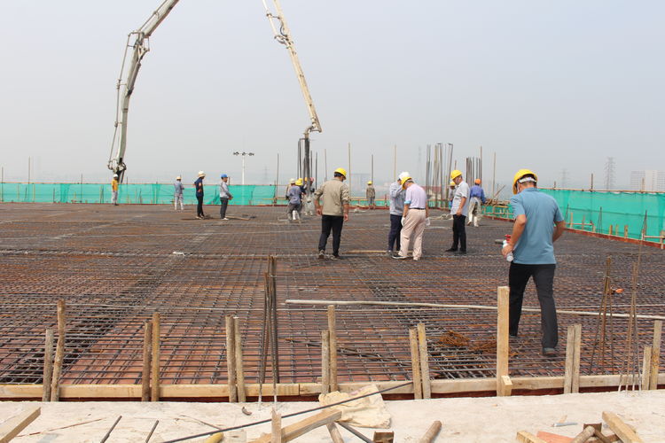 在施工單位的帶領(lǐng)下,公司領(lǐng)導(dǎo)來到分子篩廠房頂層參觀建設(shè)情況。分子篩廠房建筑面積22308㎡,是整個項目中面積最大、工程量最大、施工難度最大,設(shè)計、工藝最復(fù)雜的建筑單體。在臺風、高溫極端天氣及交叉作業(yè)、疫情等諸多不利因素影響下,為加快推進建設(shè)進程,項目建設(shè)指揮部全體成員放棄節(jié)假日休息,以“5+2”、“白+黑”的戰(zhàn)斗精神,全部深入一線進行質(zhì)量檢查和安全督導(dǎo),他們迎難而上、披荊斬棘,是惠城精神的真實寫照;施工單位增加人員、機械設(shè)備,安排工人三班倒作業(yè),保證施工現(xiàn)場24小時不停工;監(jiān)理、勘察、造價等參建單位加班加點,“隨叫隨到,不叫也到”......各方精誠合作,共同推進,終于迎來了8月10日這一封頂時刻。
