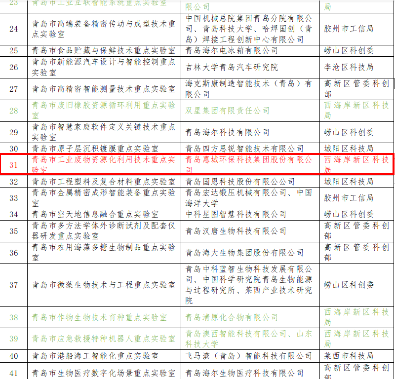 青島市重點實驗室是開展前沿創(chuàng)新領(lǐng)域工作的重要支撐,更為青島市高質(zhì)量發(fā)展保駕護航。近年來,青島惠城環(huán)??萍技瘓F股份有限公司始終以“綠水青山就是金山銀山”為發(fā)展理念,在工業(yè)“三廢”資源循環(huán)利用技術(shù)創(chuàng)新及工業(yè)應(yīng)用等方面積累了豐富的成功經(jīng)驗,作為環(huán)保型高新技術(shù)企業(yè),公司將充分發(fā)揮行業(yè)和技術(shù)領(lǐng)先優(yōu)勢,面向國家戰(zhàn)略科技發(fā)展技術(shù)需求,開展應(yīng)用基礎(chǔ)研究及競爭前沿技術(shù)研究,為提升產(chǎn)業(yè)核心競爭力、推動行業(yè)技術(shù)進步提供支撐。